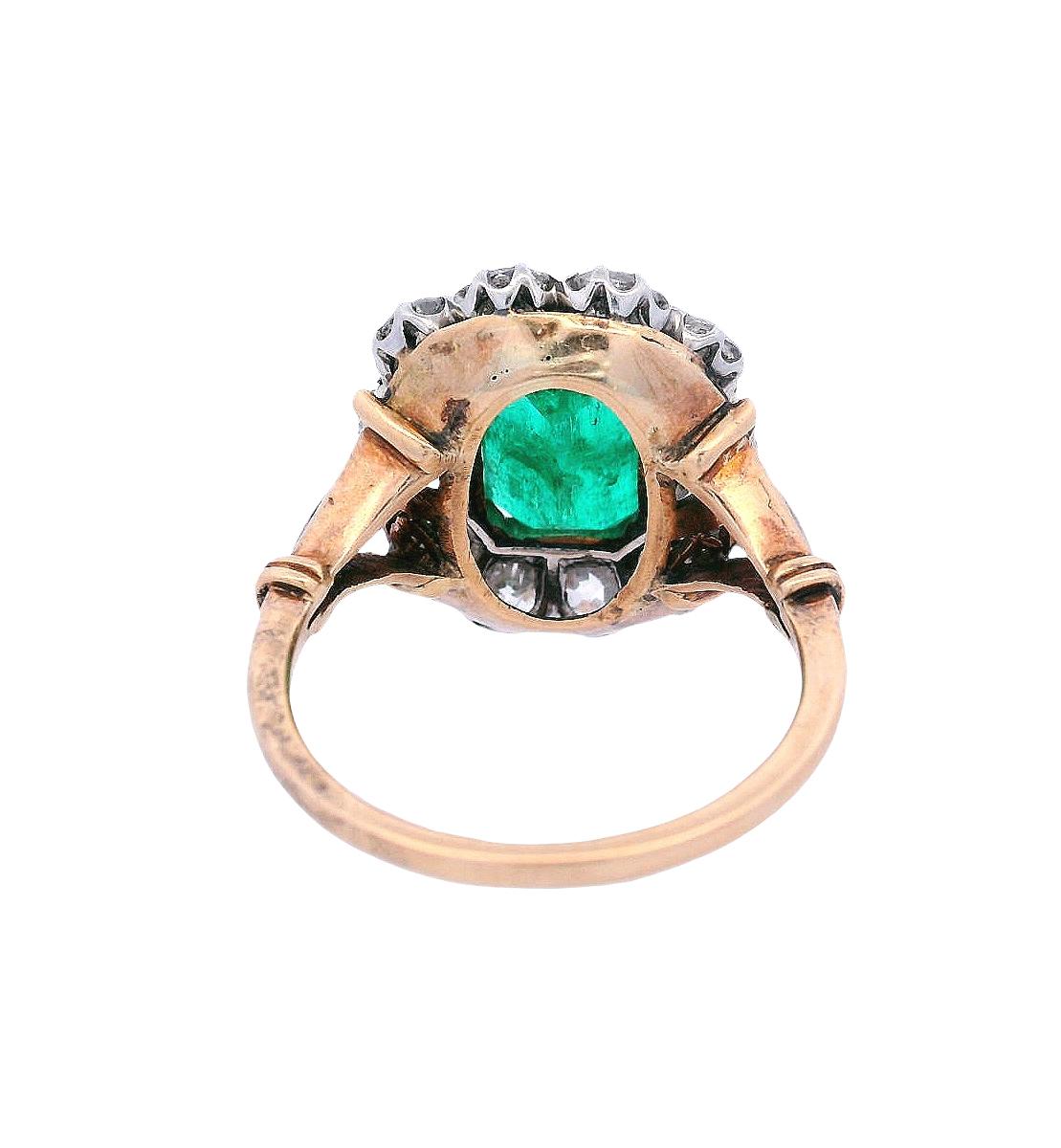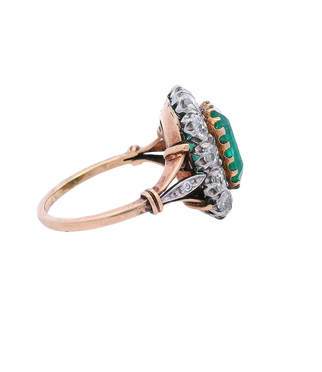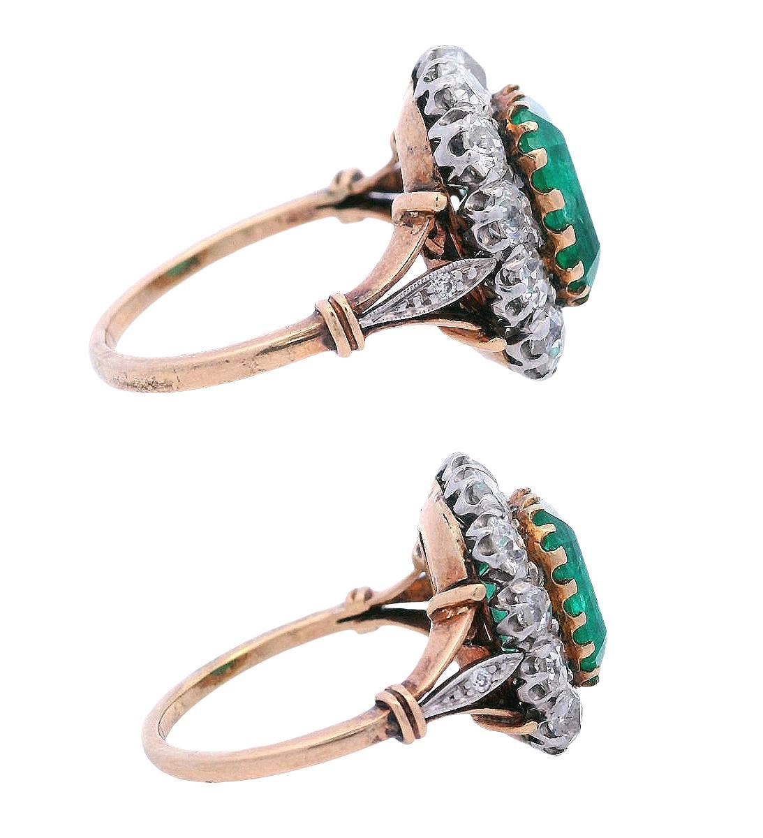 CONDITION & AUTHENTICITY: The overall condition of this piece is excellent. There is no damage to the gold or platinum settings. The emerald-cut emerald and all old mine diamonds are securely set in their original mountings, displaying the exceptional craftsmanship of the Edwardian period.