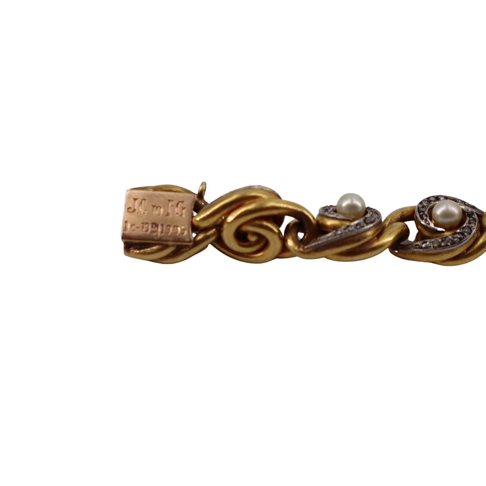 Art Nouveau French 18 kt Gold Bracelet with Pearls and Diamonds