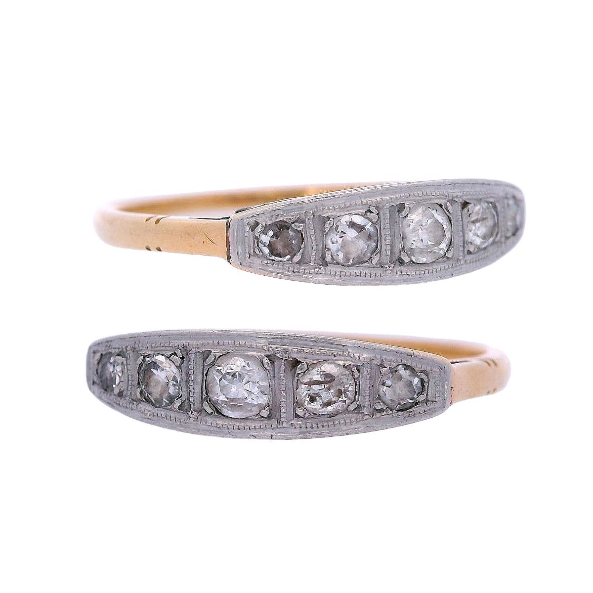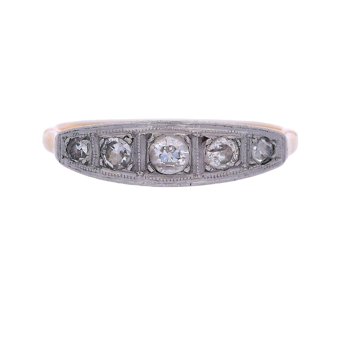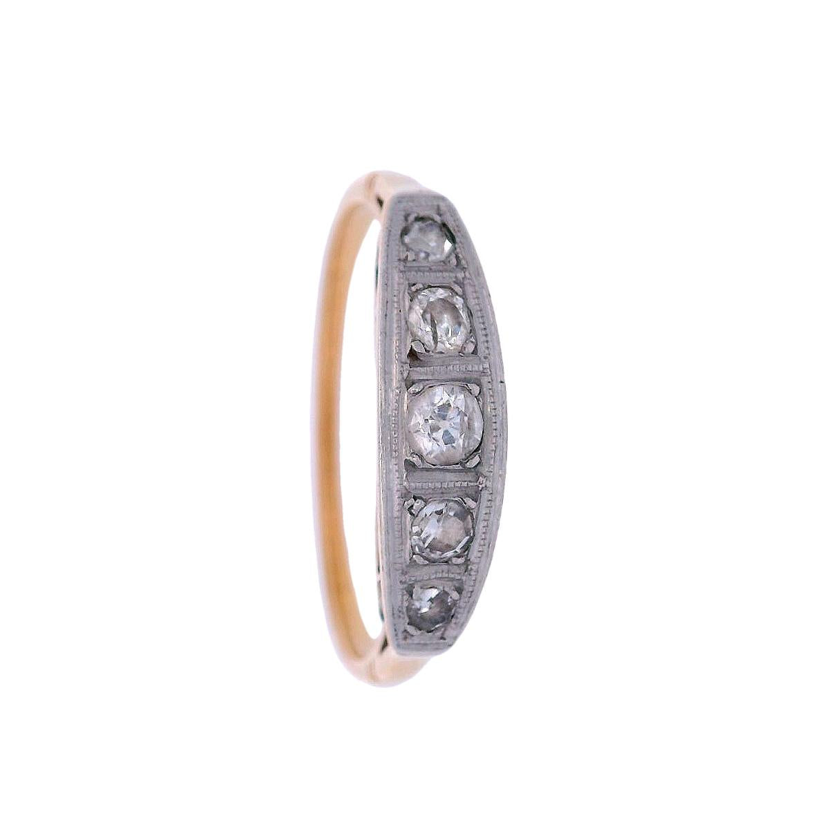 Art Deco 1920 five stones Ring in 18kt Gold and Silver with Diamonds