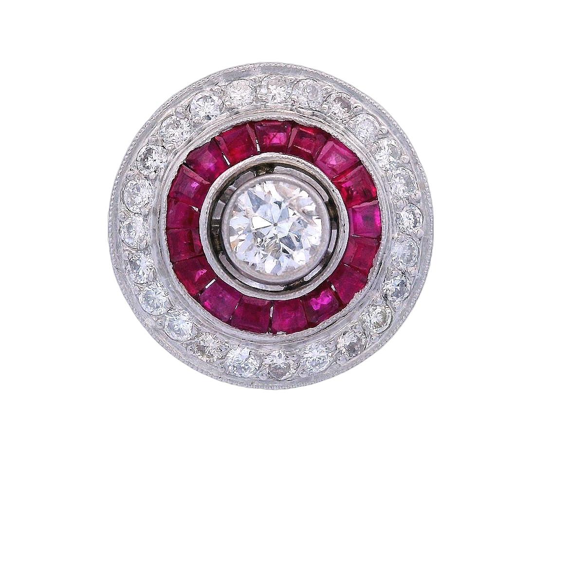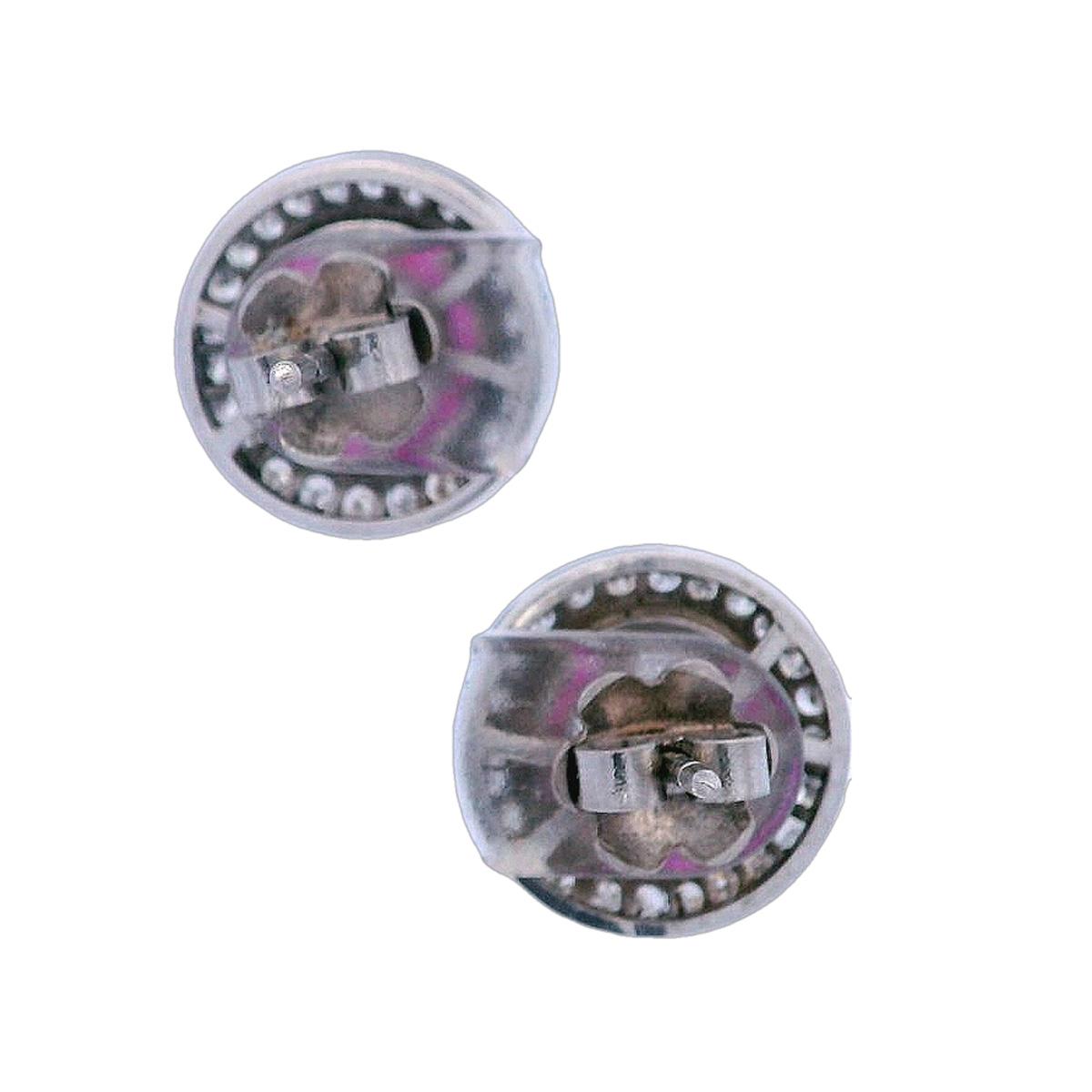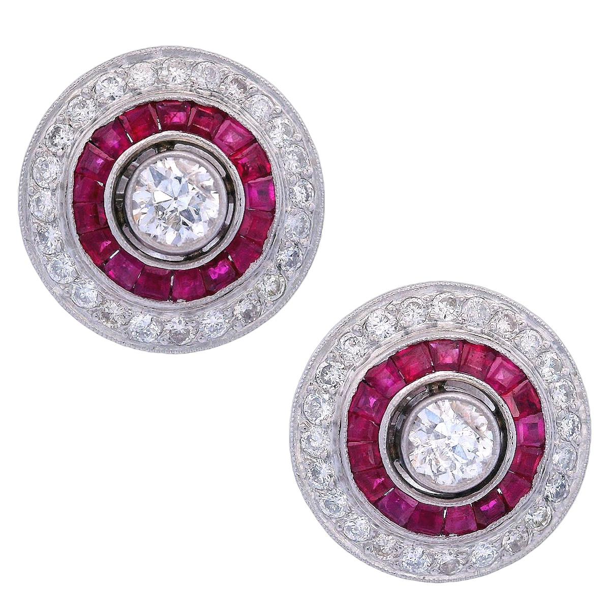 The earrings are beautifully accented with 50 round-cut diamonds, totaling around 0.50 carats, which are graded as colorless, adding an extra layer of brilliance and elegance. To enhance their luxurious appeal, the design also incorporates square-cut rubies weighing approximately 0.40 carats, offering a striking contrast and vibrant pop of color.