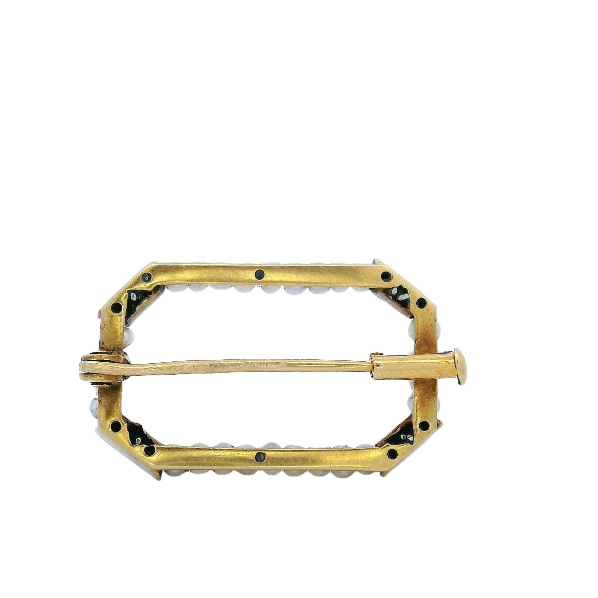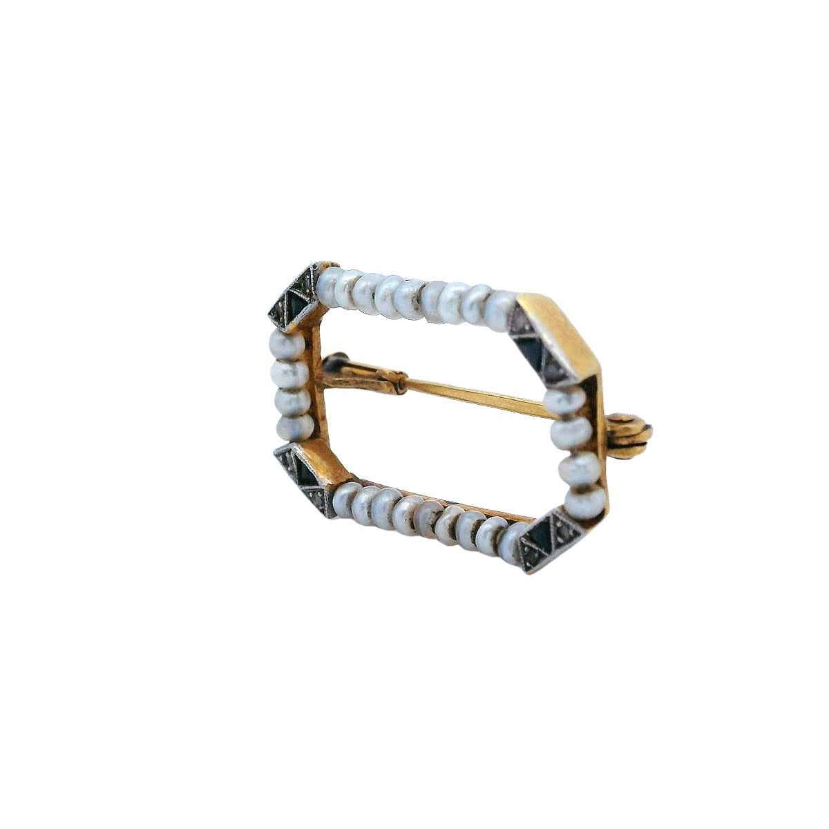 This exquisite Art Deco pin brooch, crafted in the 1920s, is a stunning example of the era's attention to detail and elegance. Made from 18kt yellow gold with a platinum top, it combines luxurious materials with intricate craftsmanship.