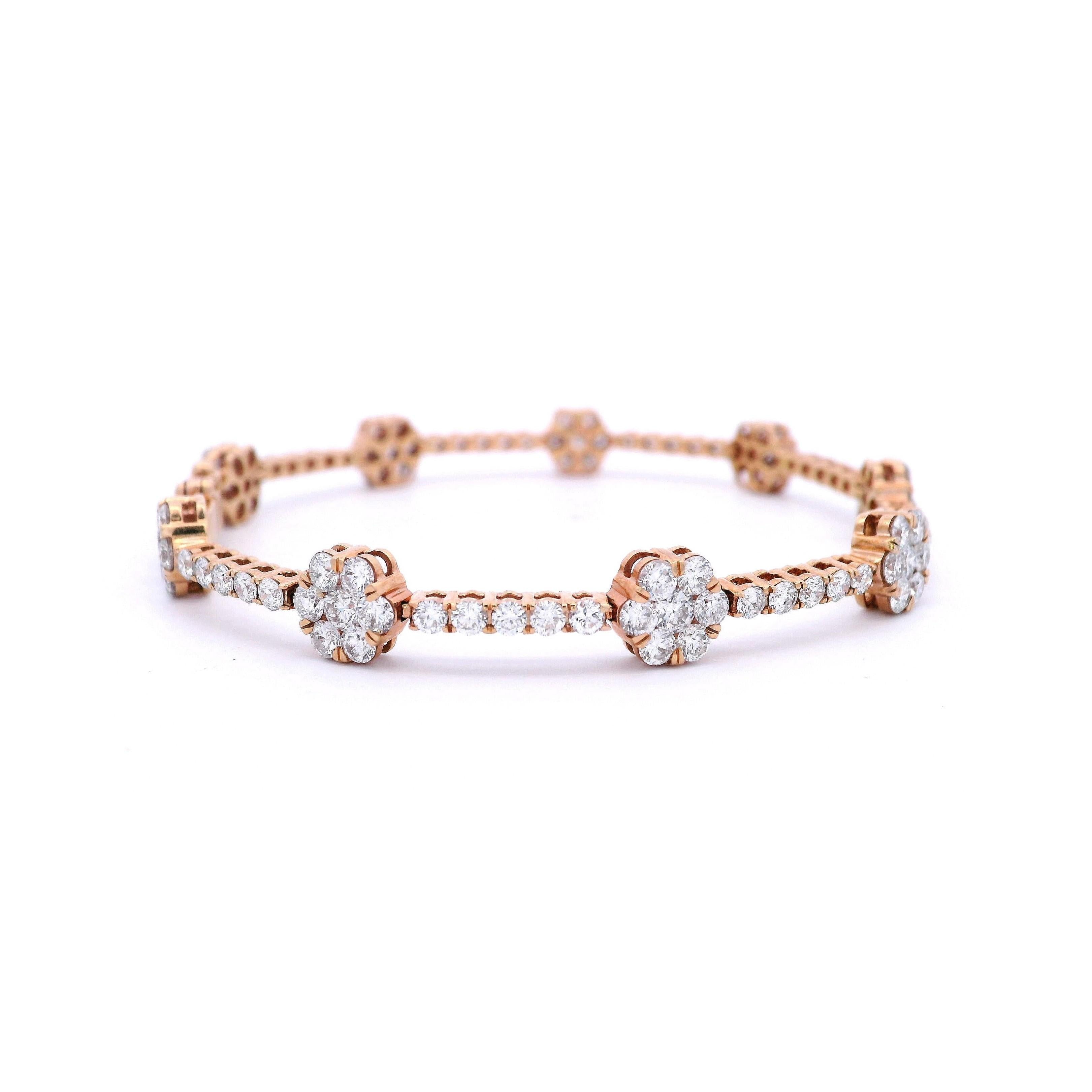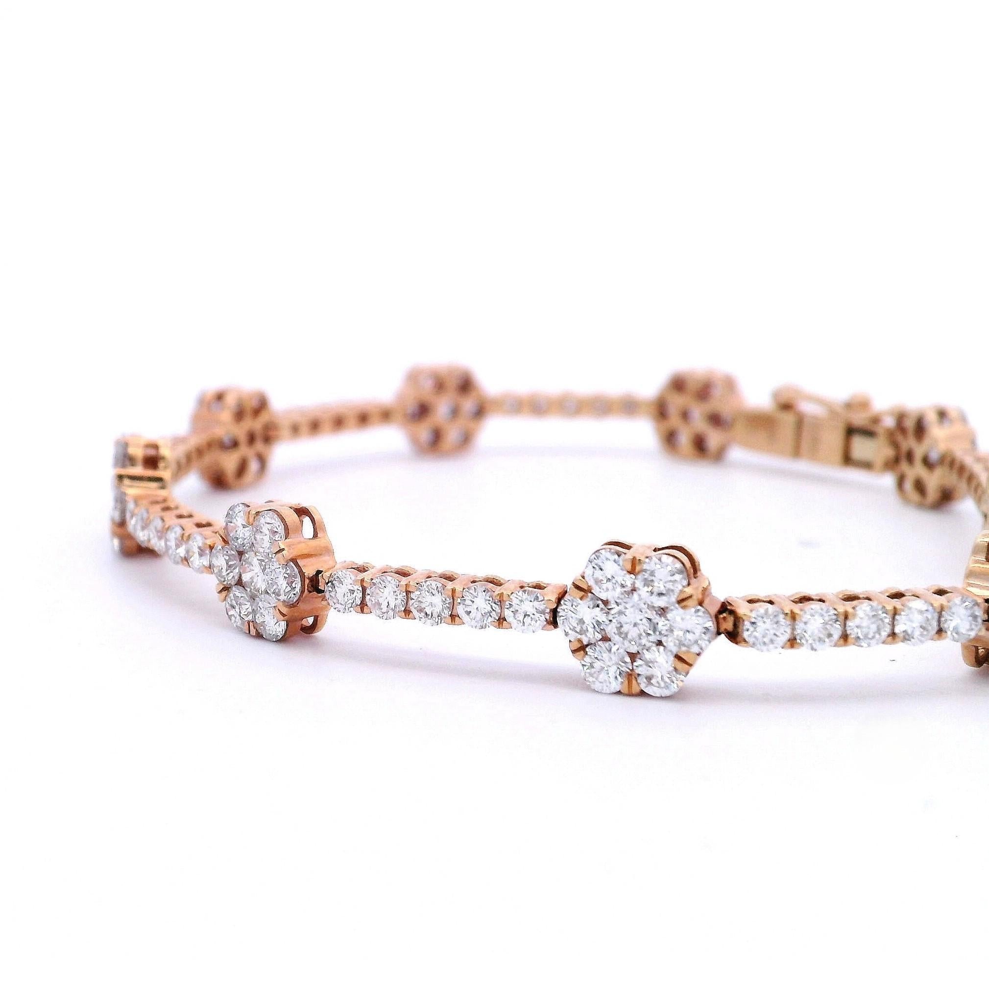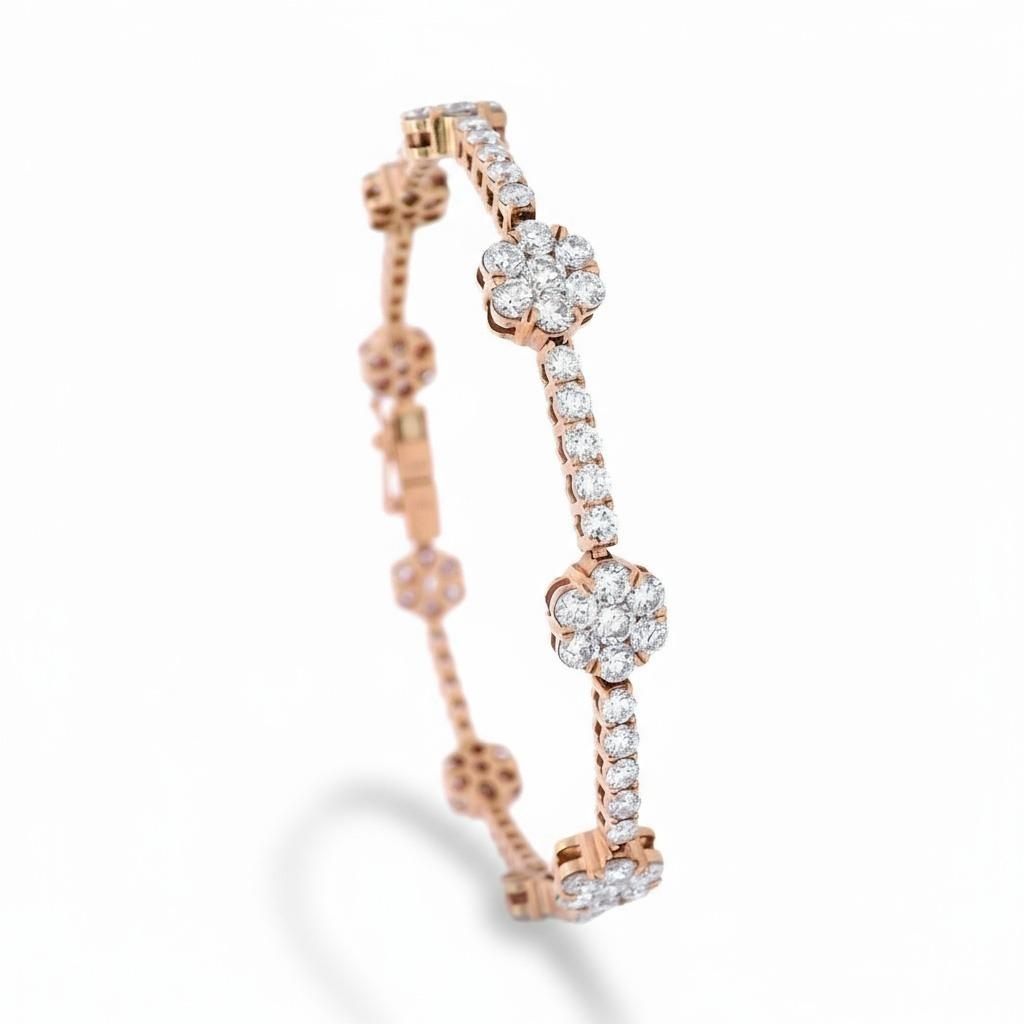 This exquisite flower tennis bracelet showcases exceptional contemporary craftsmanship from the renowned jewelry house of Yılmaz Fine Jewellery, expertly crafted in lustrous 18kt rose gold and accented with 110 calibrated round-cut diamonds totaling 5.30 carats in exceptional E-F color and VVS1 clarity. The delicate flower motif creates elegant movement and sophistication, while the precision-set diamonds ensure maximum sparkle and brilliance throughout the refined design.
