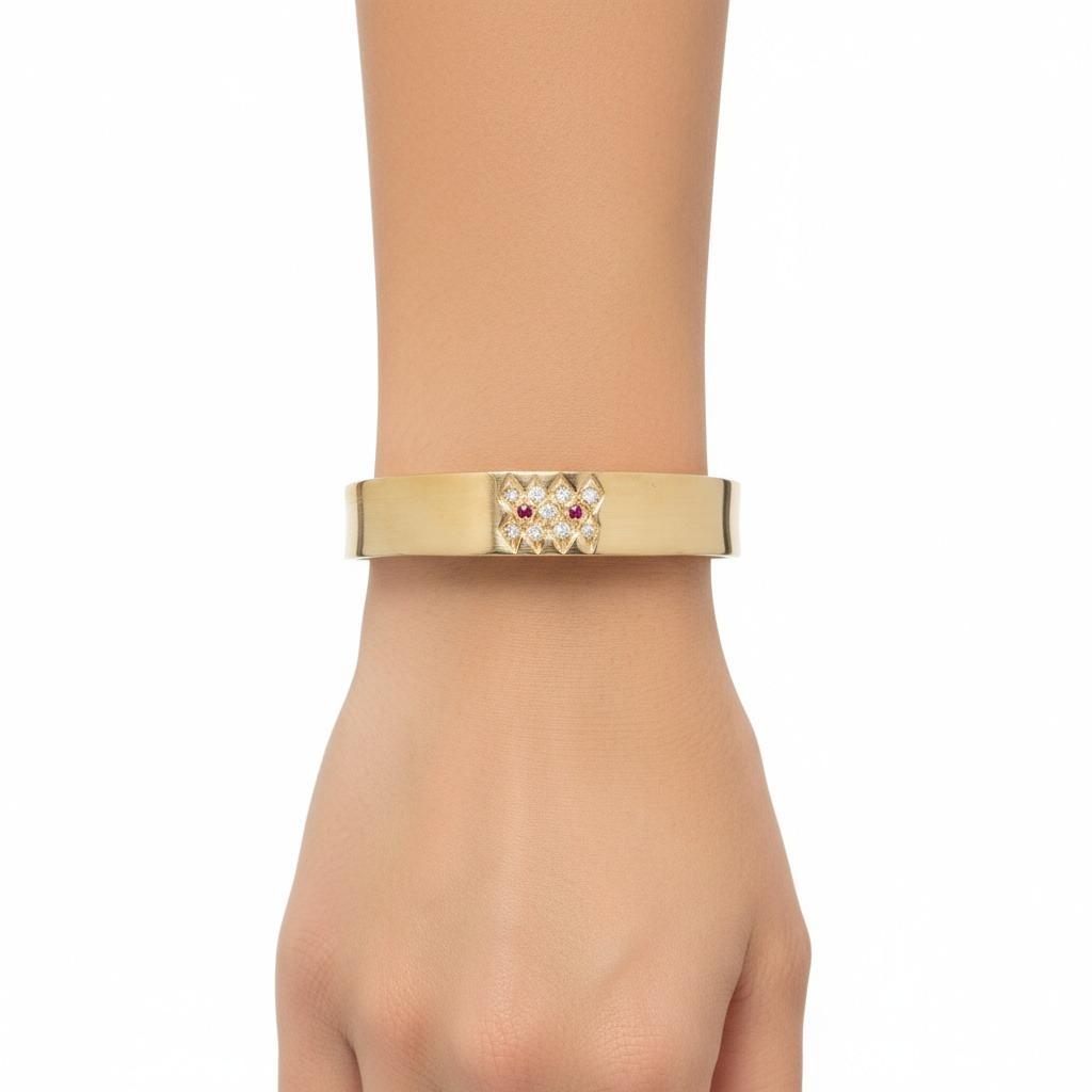 Designed to fit comfortably on wrists up to 7 inches, this elegant cuff features a slender width of 0.47 inches, combining refined style with substantial gemstone presence.