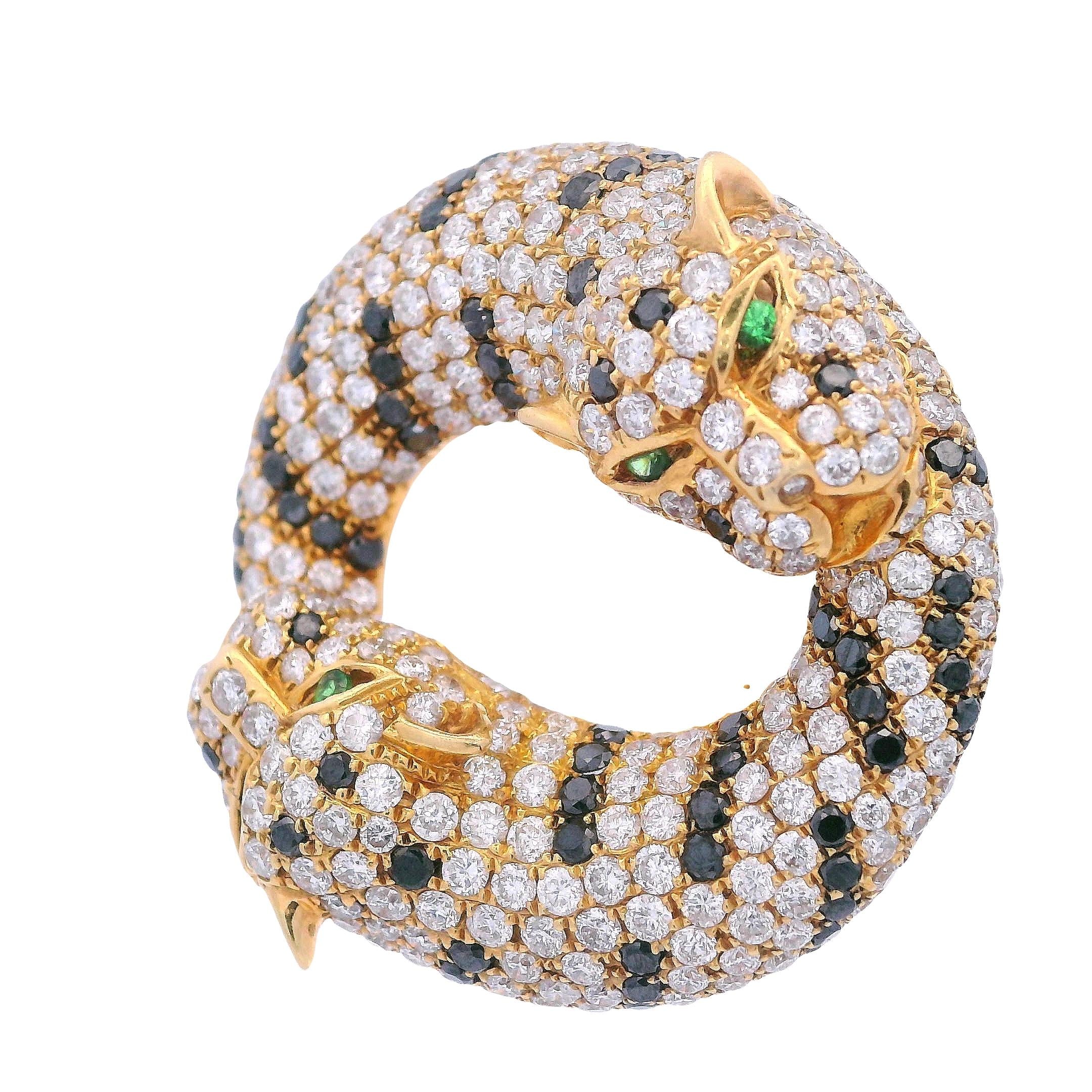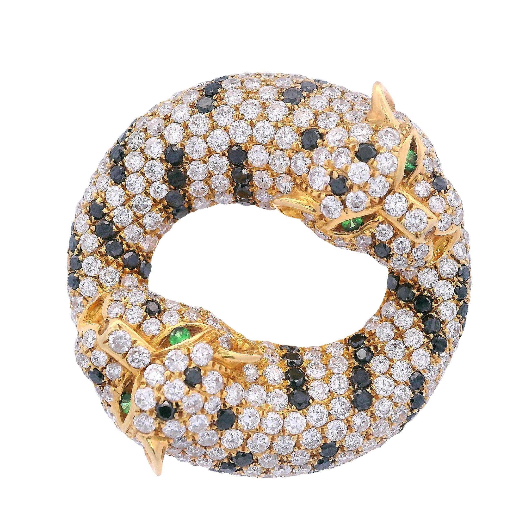 CONDITION & AUTHENTICITY: The overall condition of this piece is excellent. There is no damage to the gold settings. All white diamonds, black diamonds, and tsavorite eyes are securely set in their mountings, displaying exceptional craftsmanship and attention to detail.