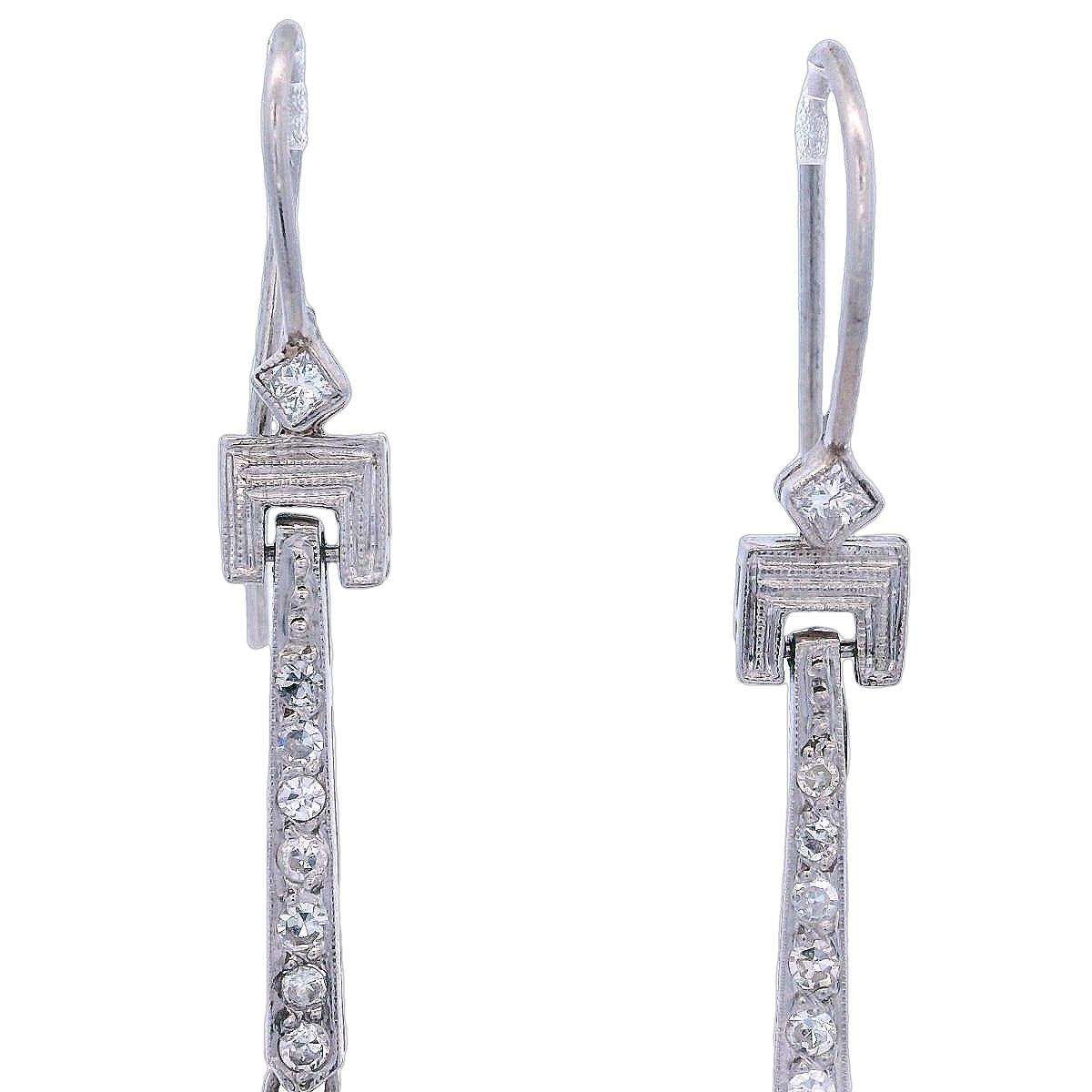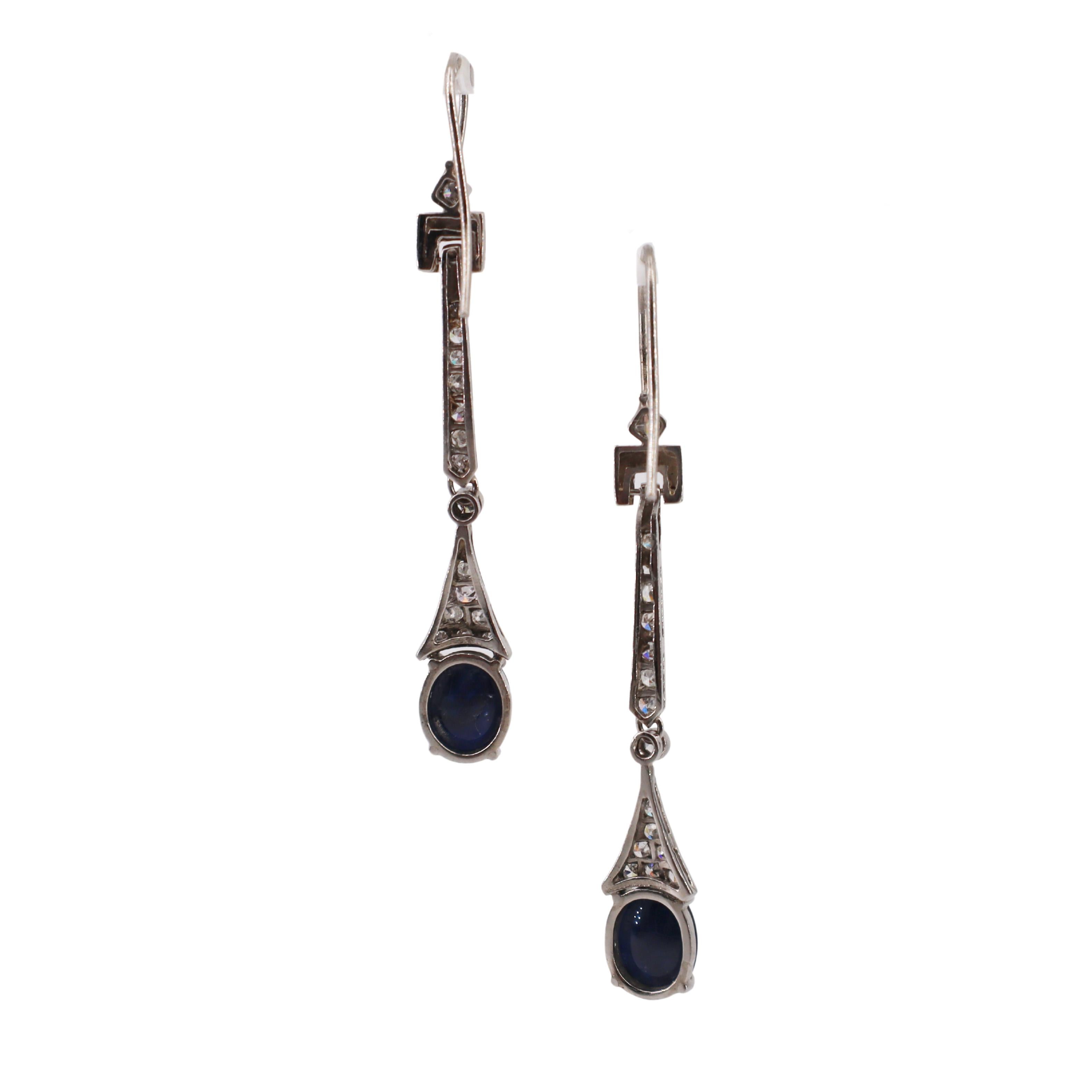 Art Deco 1920 Style hanging Earrings in Platinum with Diamonds and Sapphires