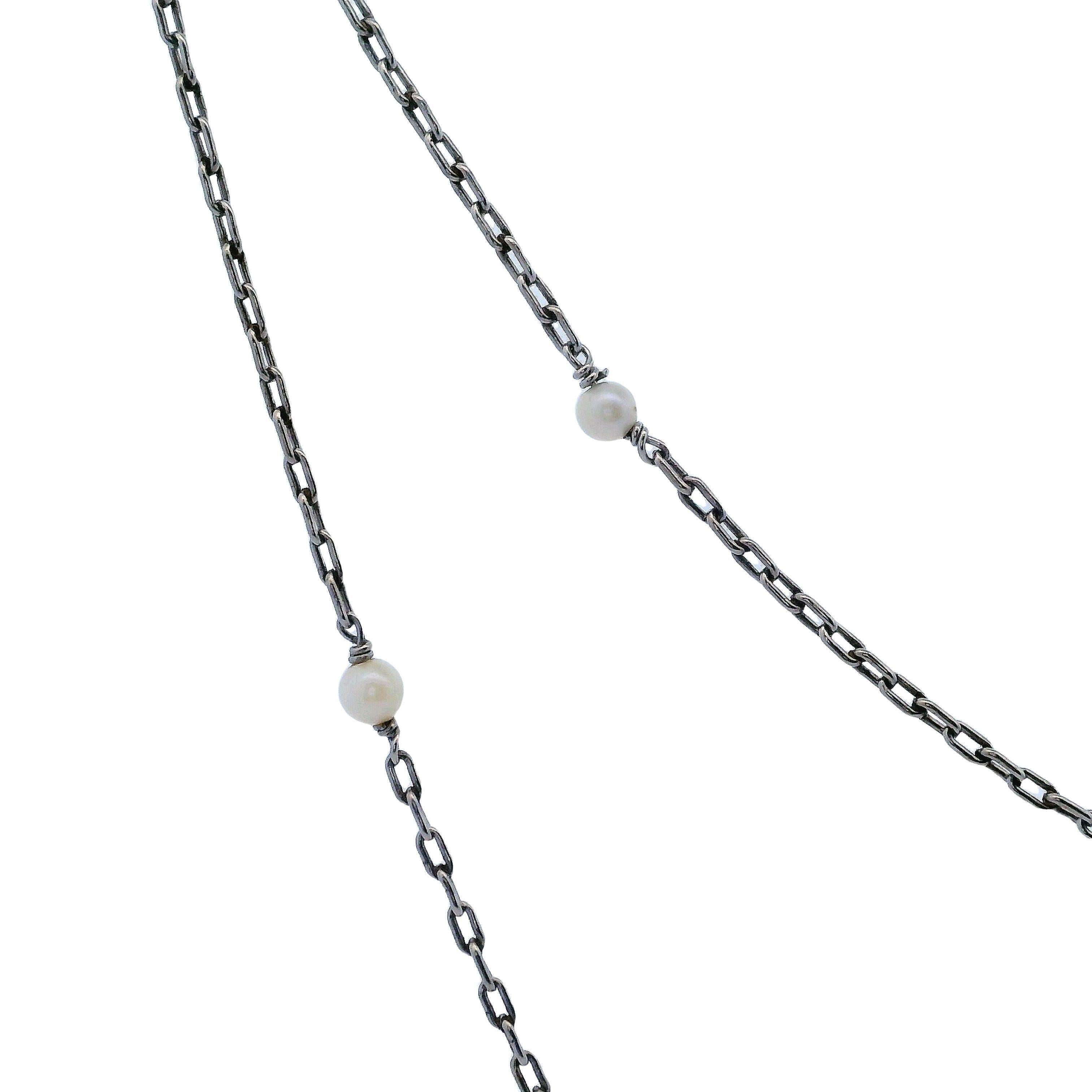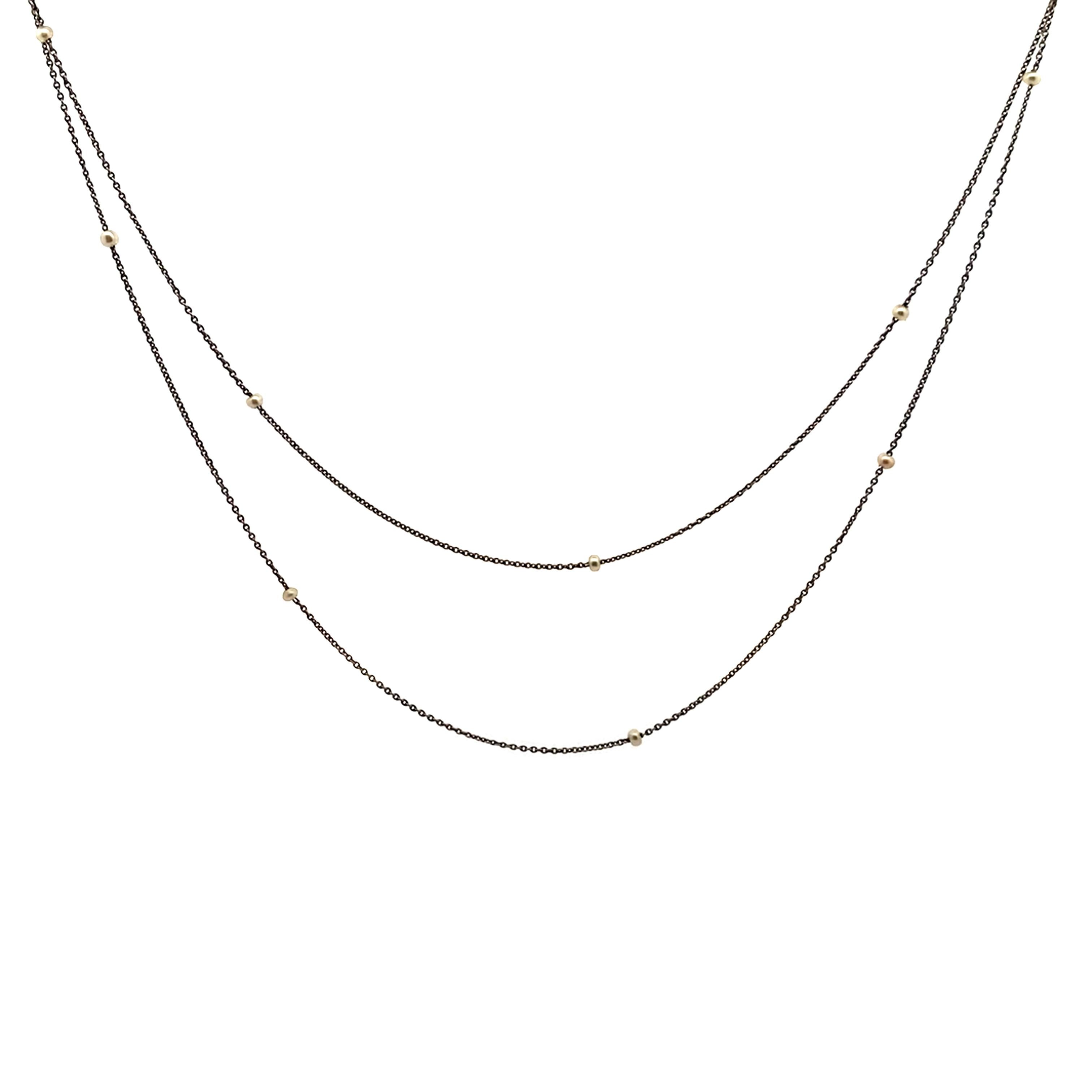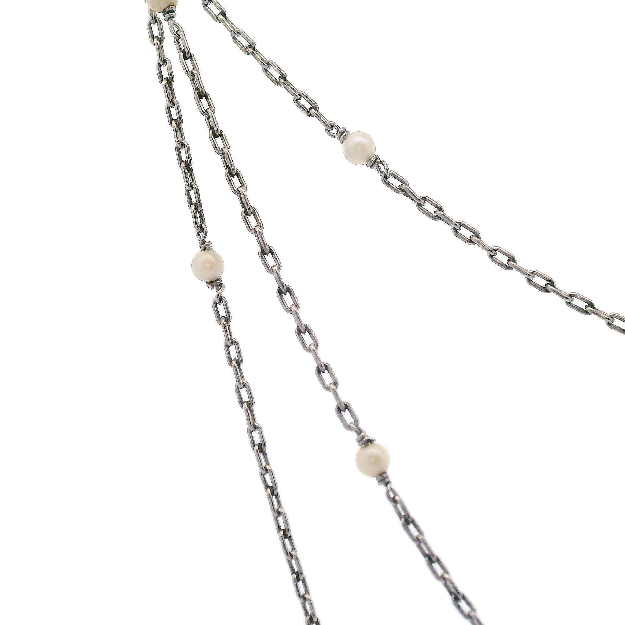 Antique Platinum Long chain with Micro Pearls