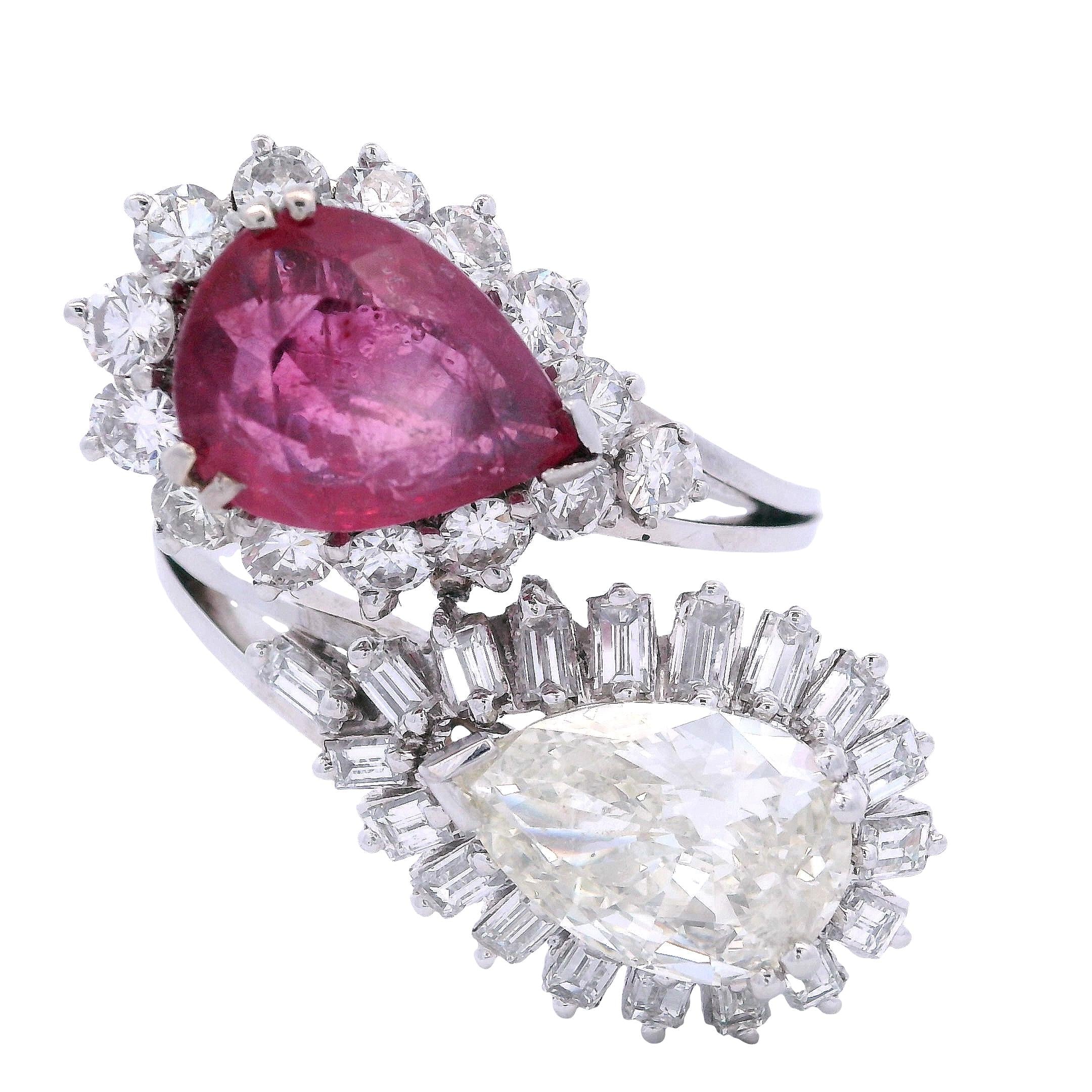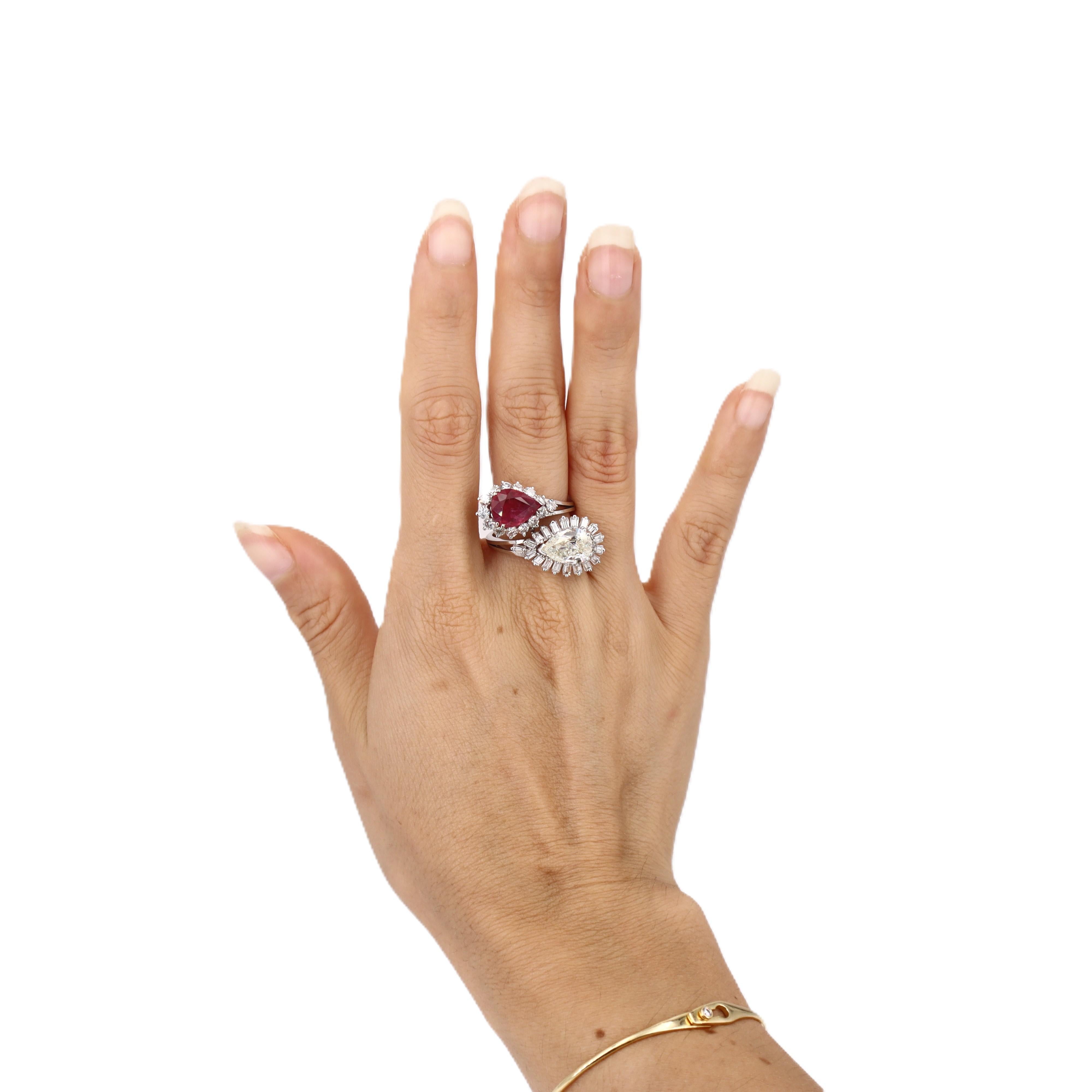 Stone: Pear-shaped Diamond (approx. 2.15 ct, L-M Color, I1 Clarity) & Ruby (approx. 2.50 ct)