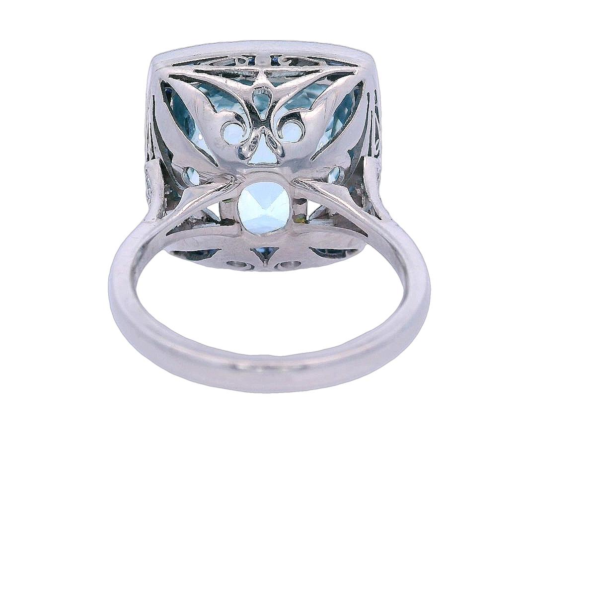 Presenting a remarkable Platinum Cocktail Ring that exudes luxury and style. At its center is a stunning Aquamarine weighing an impressive 13.87 carats, showcasing a mesmerizing blue hue that captures the essence of the sea.