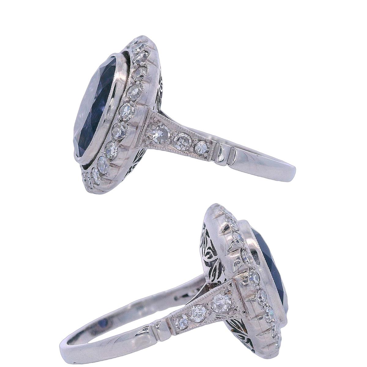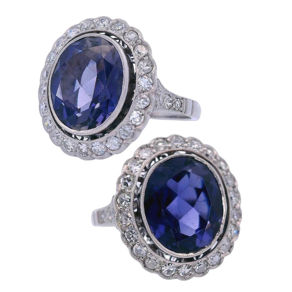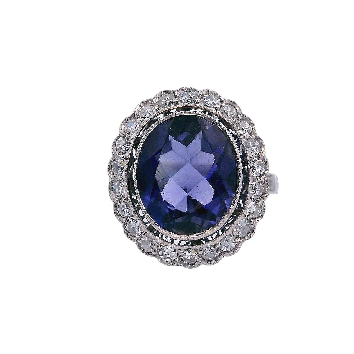 Art Deco Style Platinum Cocktail Ring with Tanzanite and Diamonds