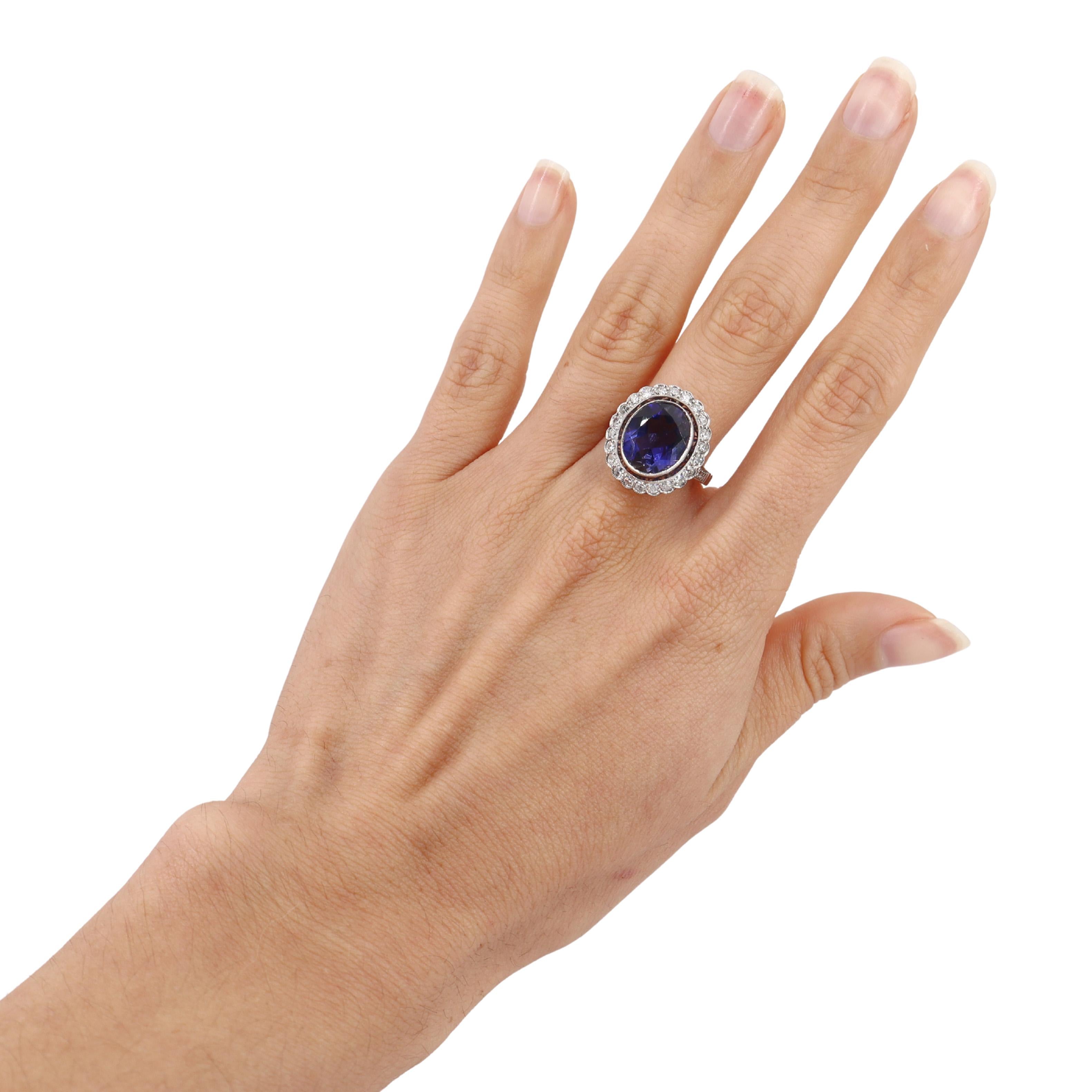 Introducing a breathtaking Platinum Cocktail Ring that showcases a stunning oval cut tanzanite at its center, weighing approximately 6.00 carats. This exquisite gemstone exhibits a captivating blue-violet hue, making it a truly eye-catching centerpiece.