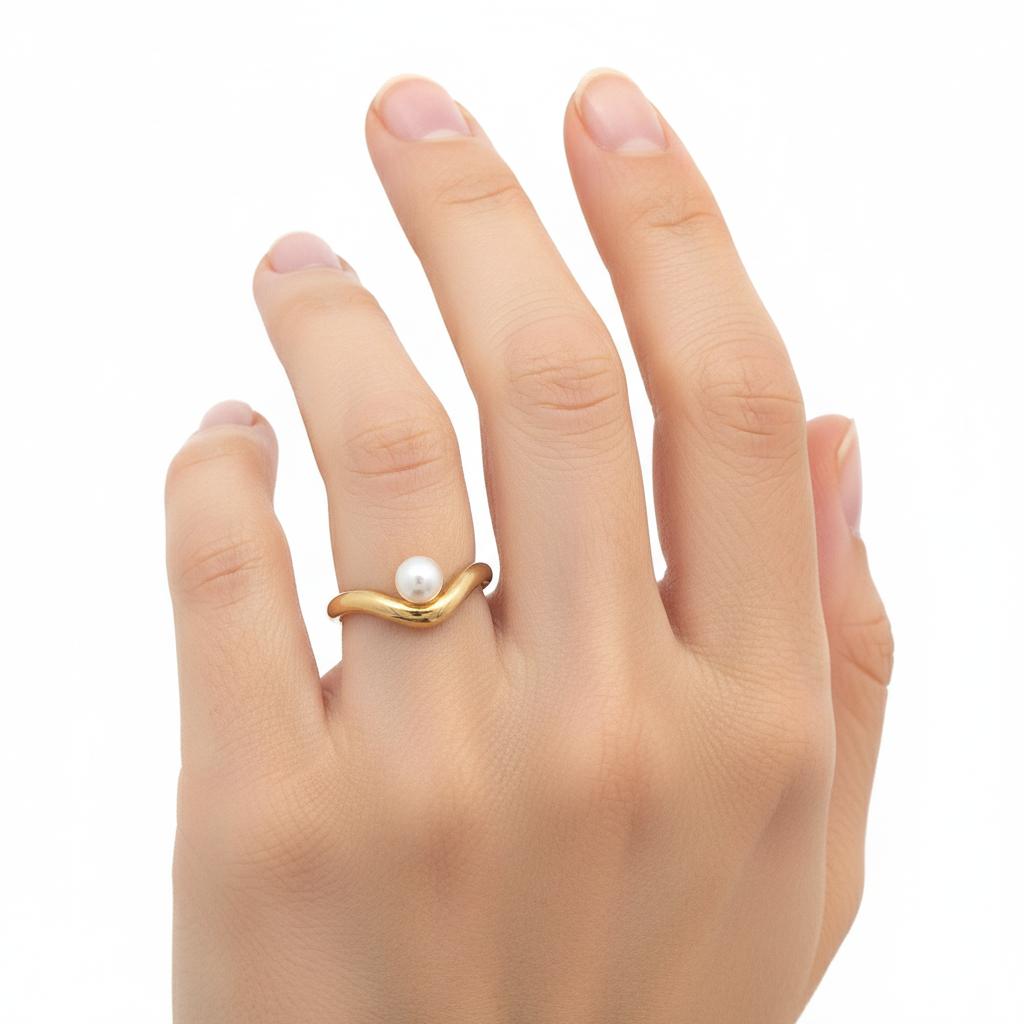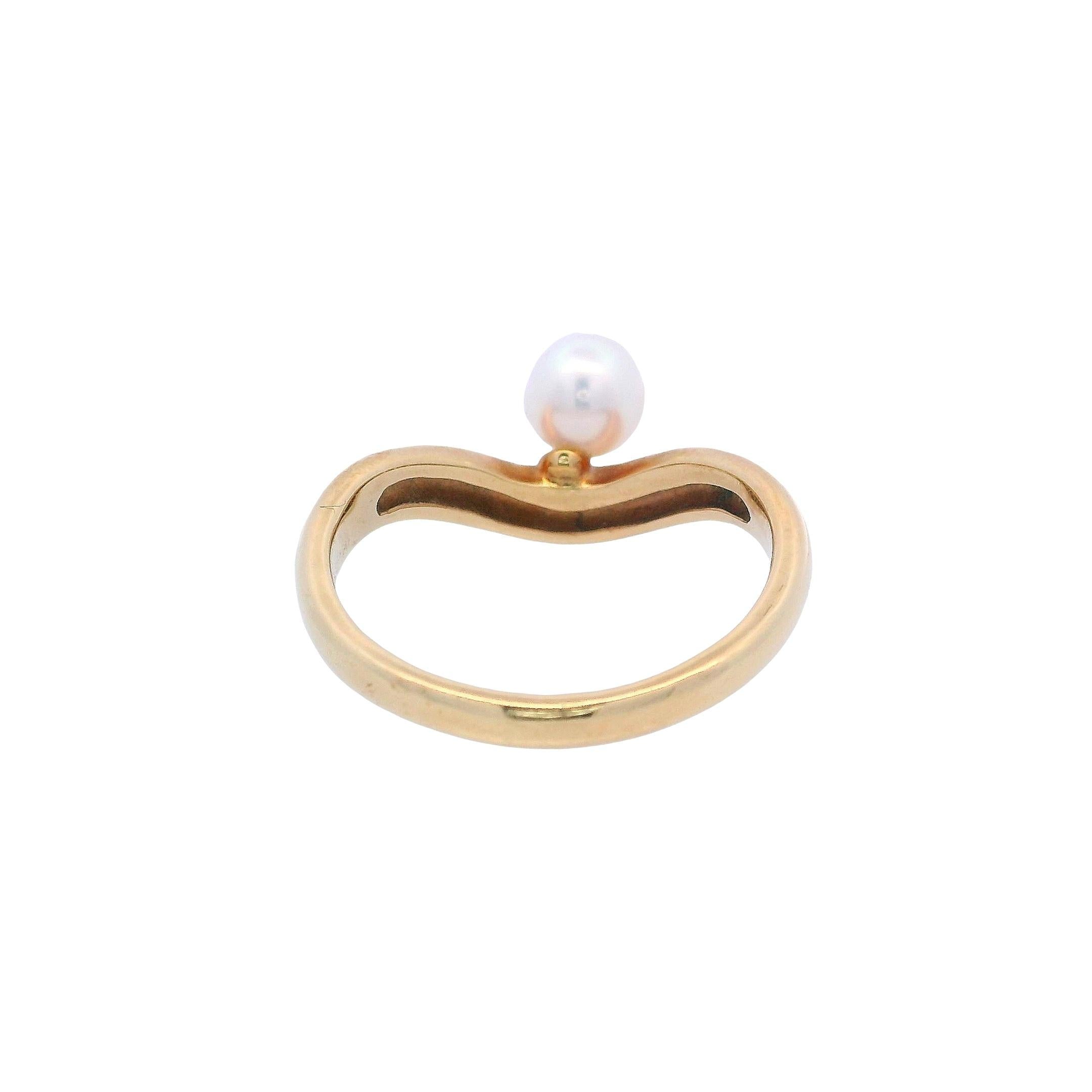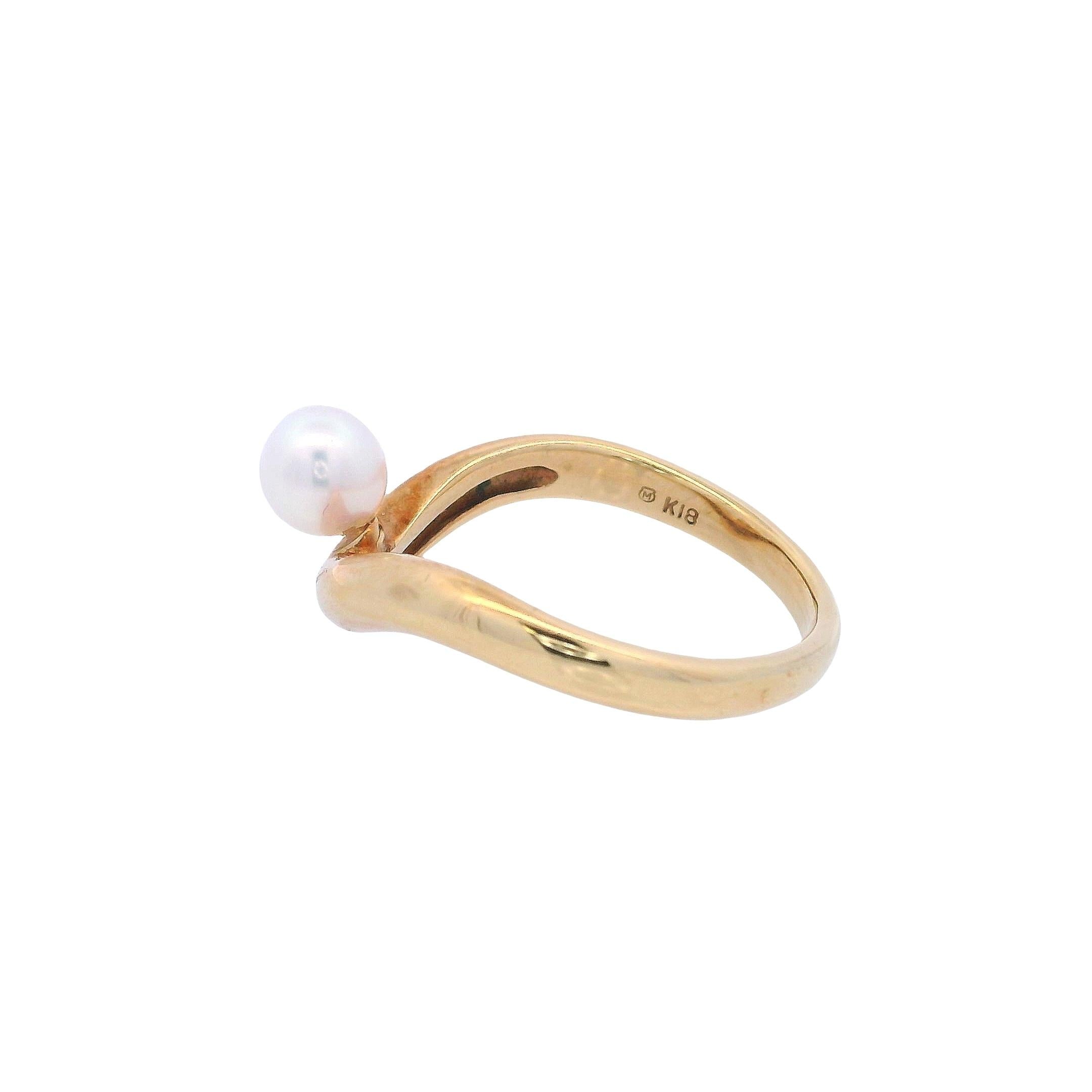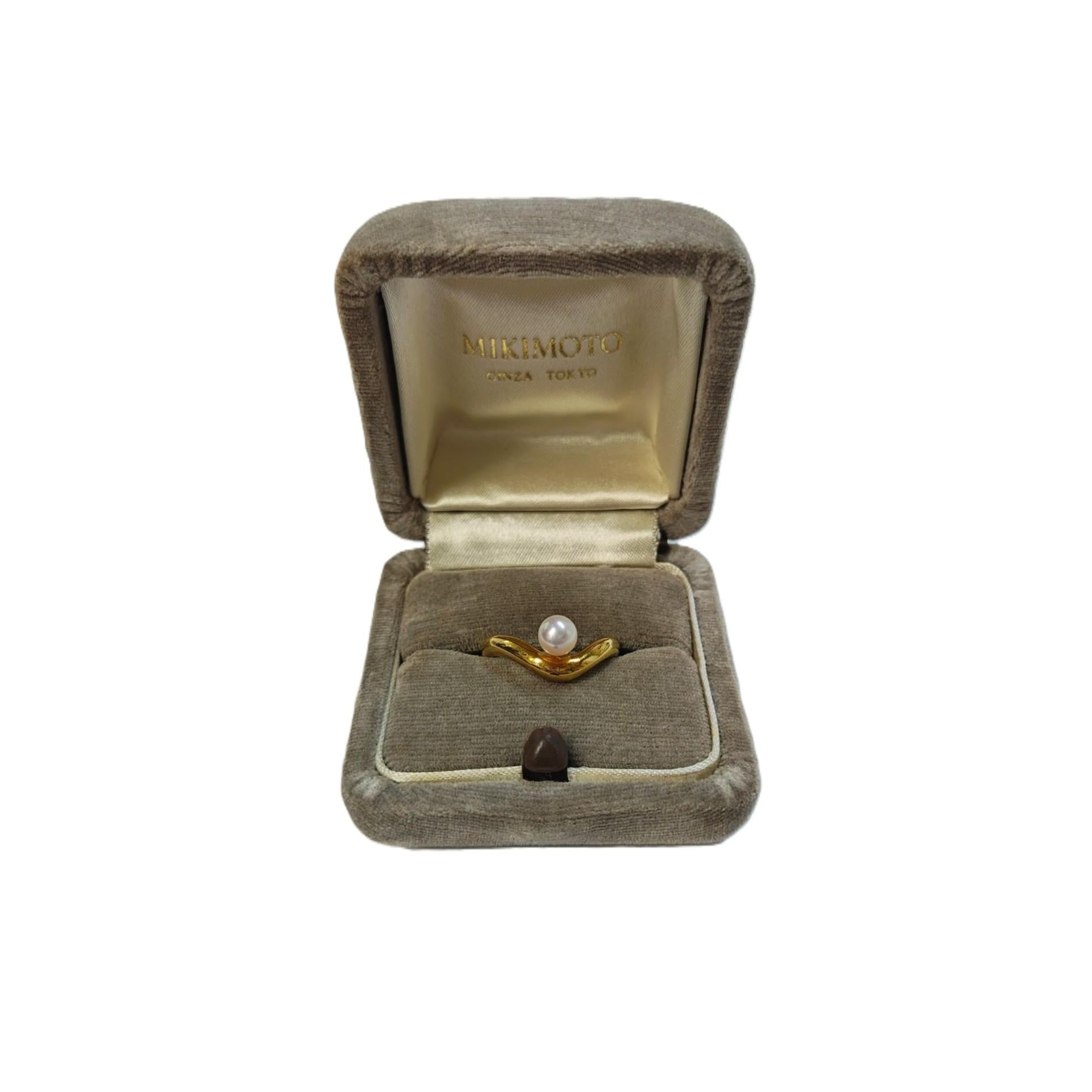 MIKIMOTO Vintage 18K yellow Gold Wavy Ring with Akoya Pearl