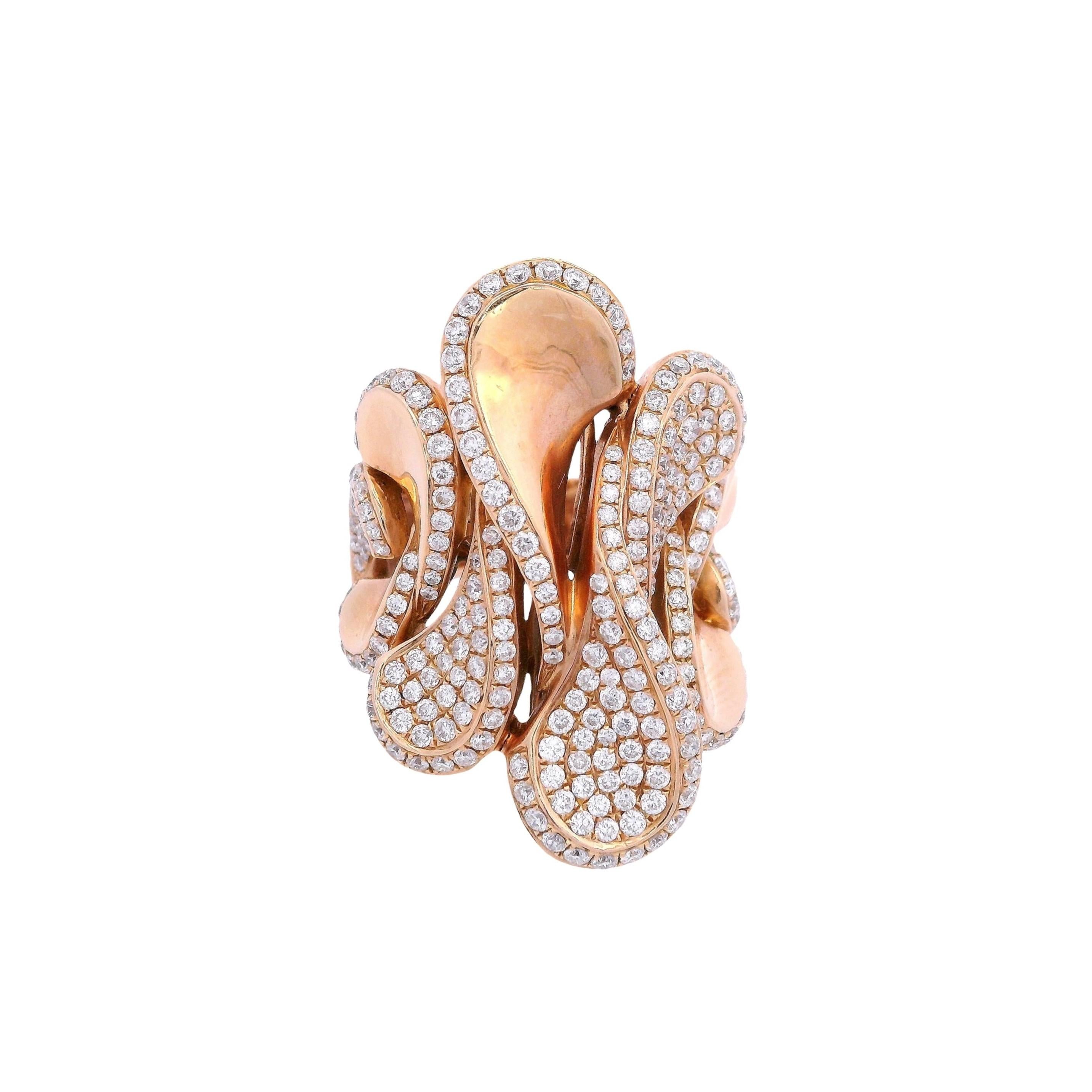 This breathtaking contemporary ring transforms your finger into a canvas of sparkling light with 223 meticulously set diamonds. Crafted in lustrous 18kt yellow gold, this exceptional piece showcases the ultimate in pavé artistry, creating an unbroken surface of diamond fire.