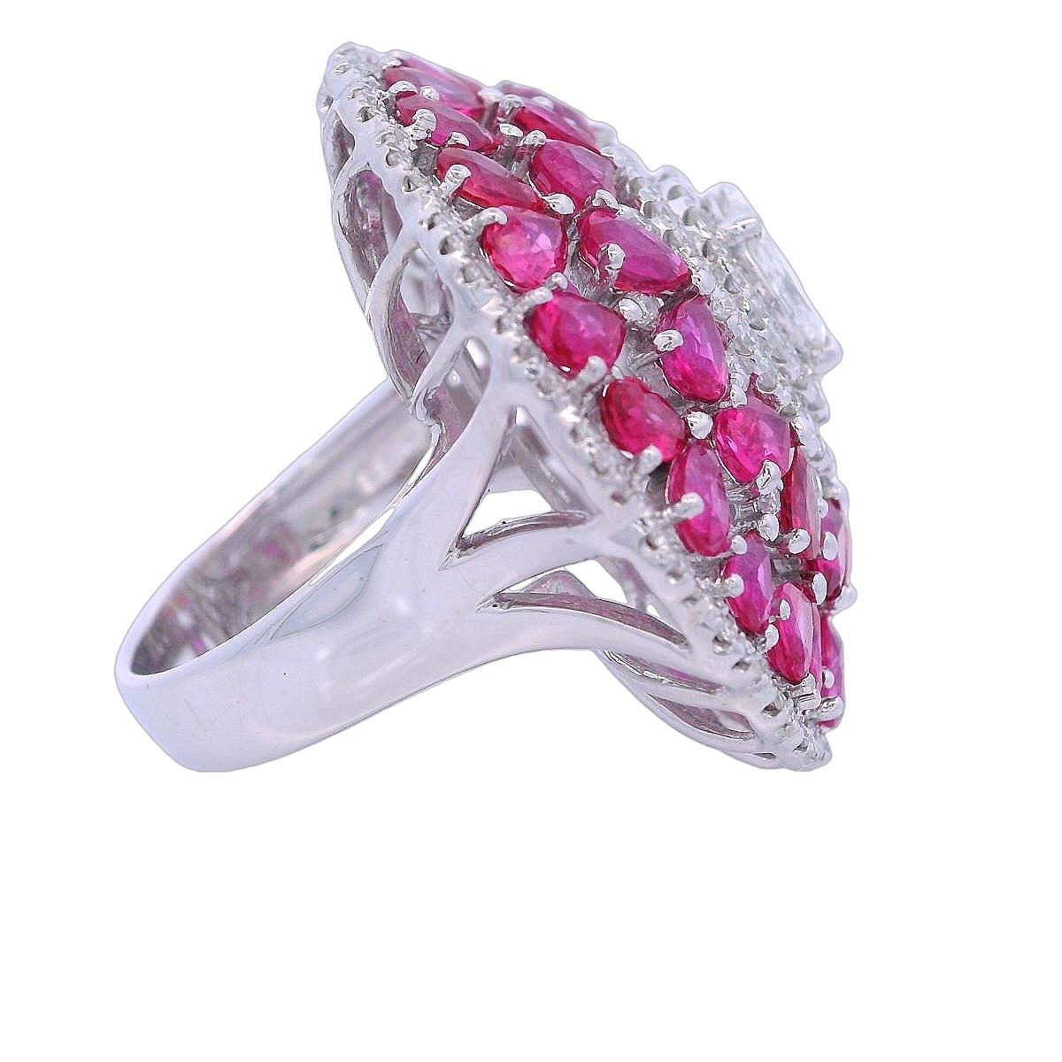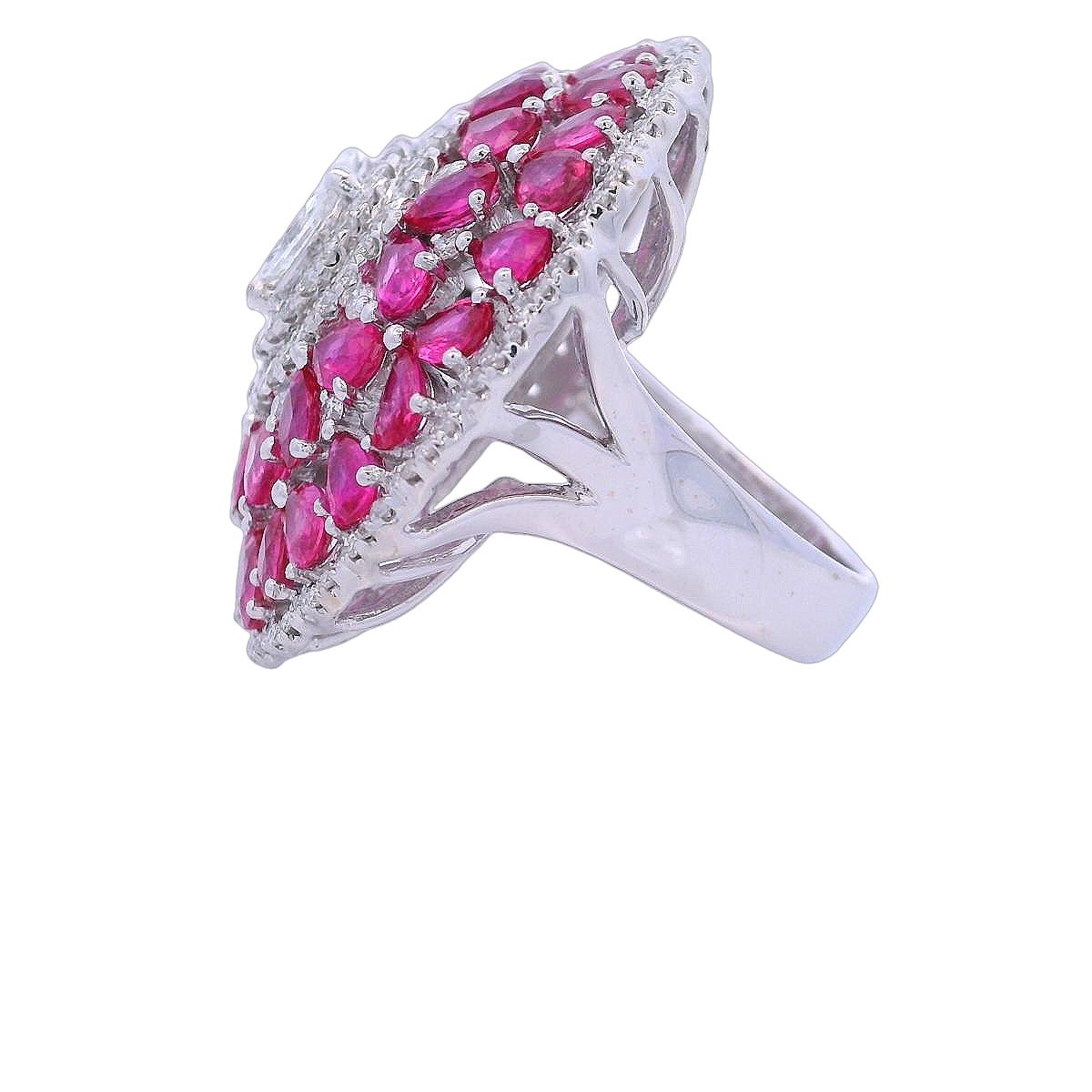 Presenting a breathtaking massive cocktail ring crafted in 18kt white gold, designed to make a bold statement. This stunning piece features four dazzling marquise-cut diamonds and four princess-cut diamonds, weighing approximately 0.70 carats together, with exceptional F-G color and VS clarity that showcase their brilliance.