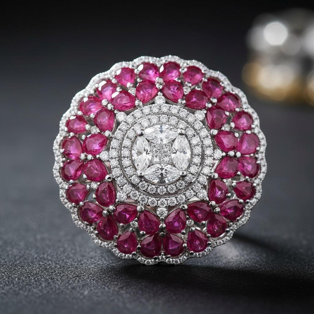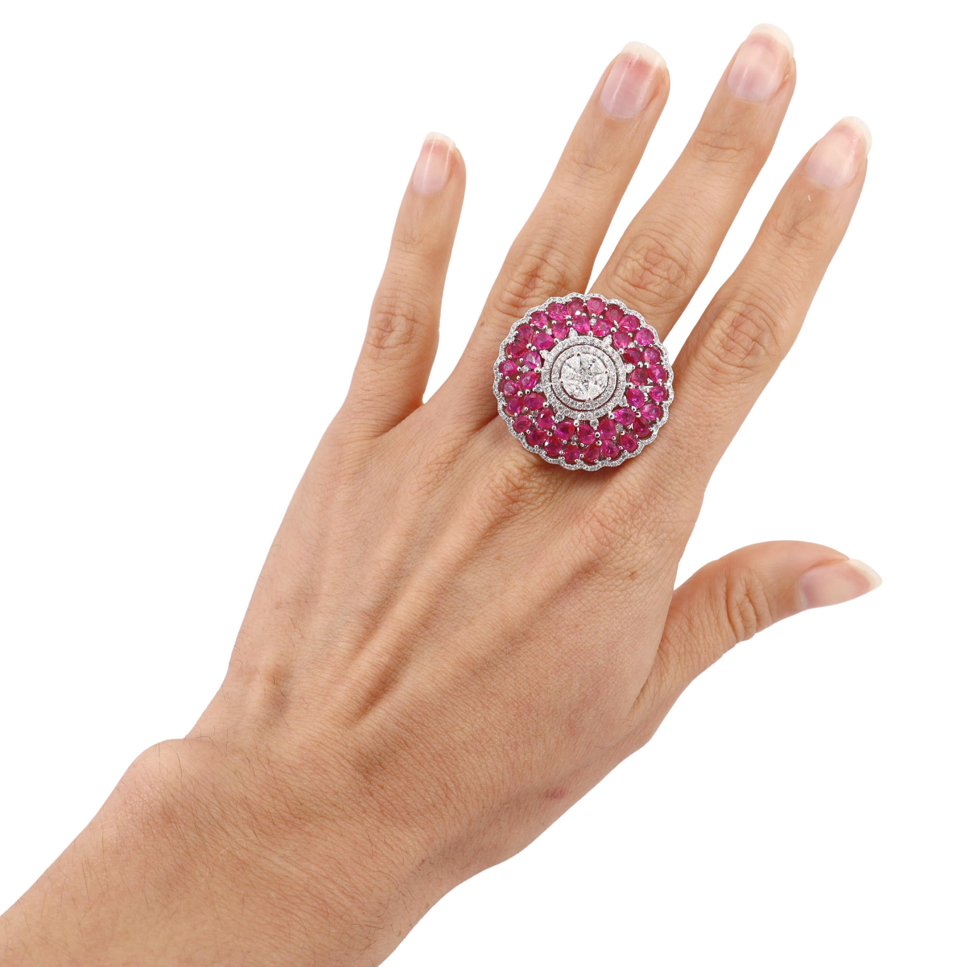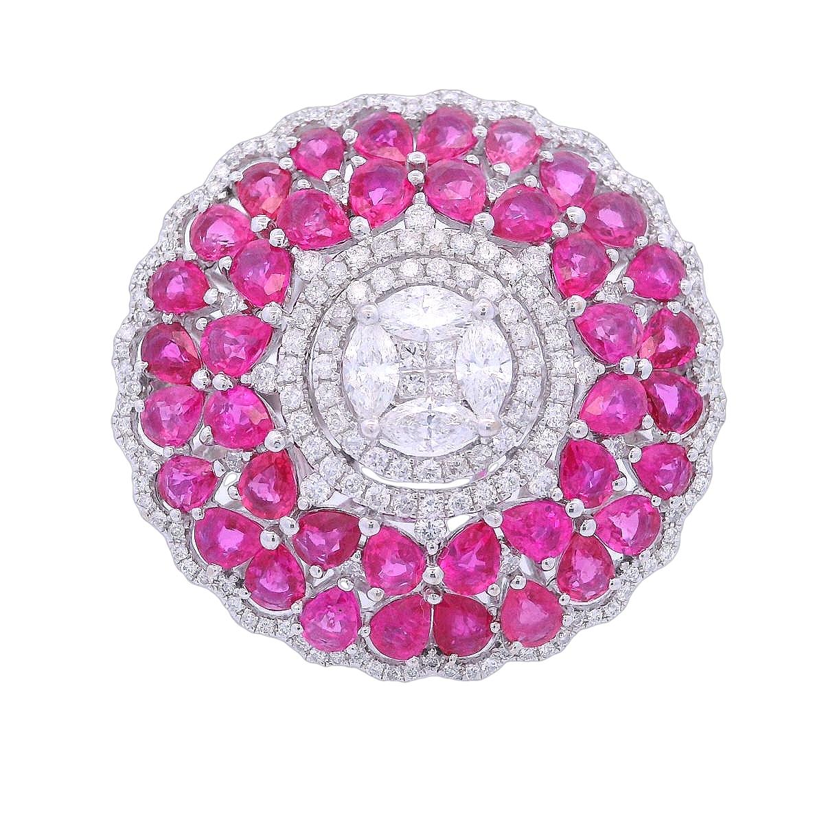 18kt white Gold Cocktail Ring with Pink Sapphires and Diamonds