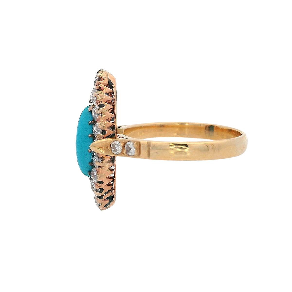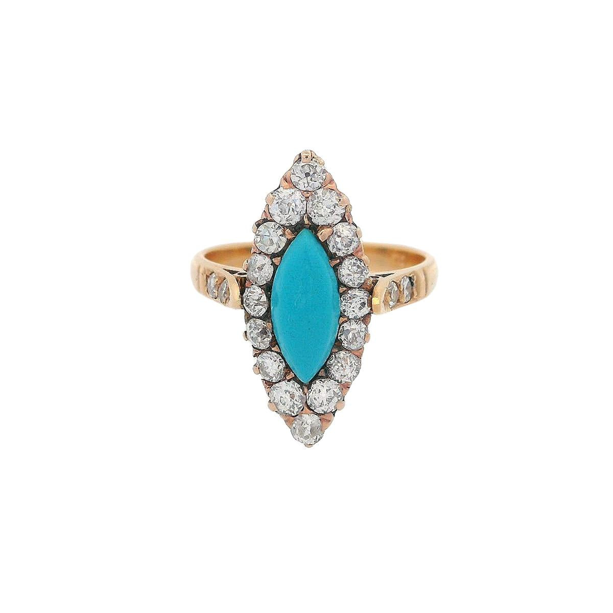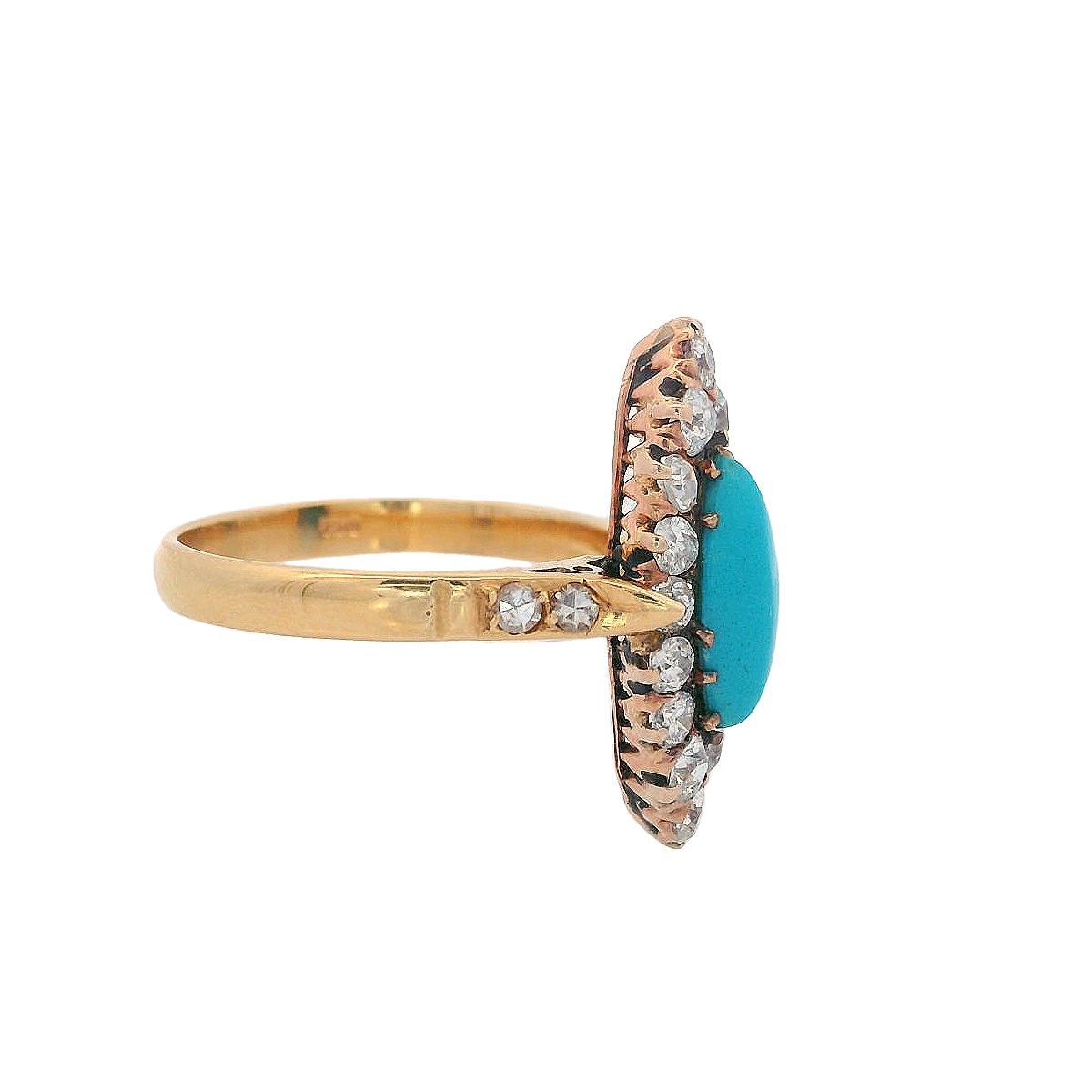 Victorian 1910 Navette Ring in 18kt yellow Gold with Turquoise and Diamonds